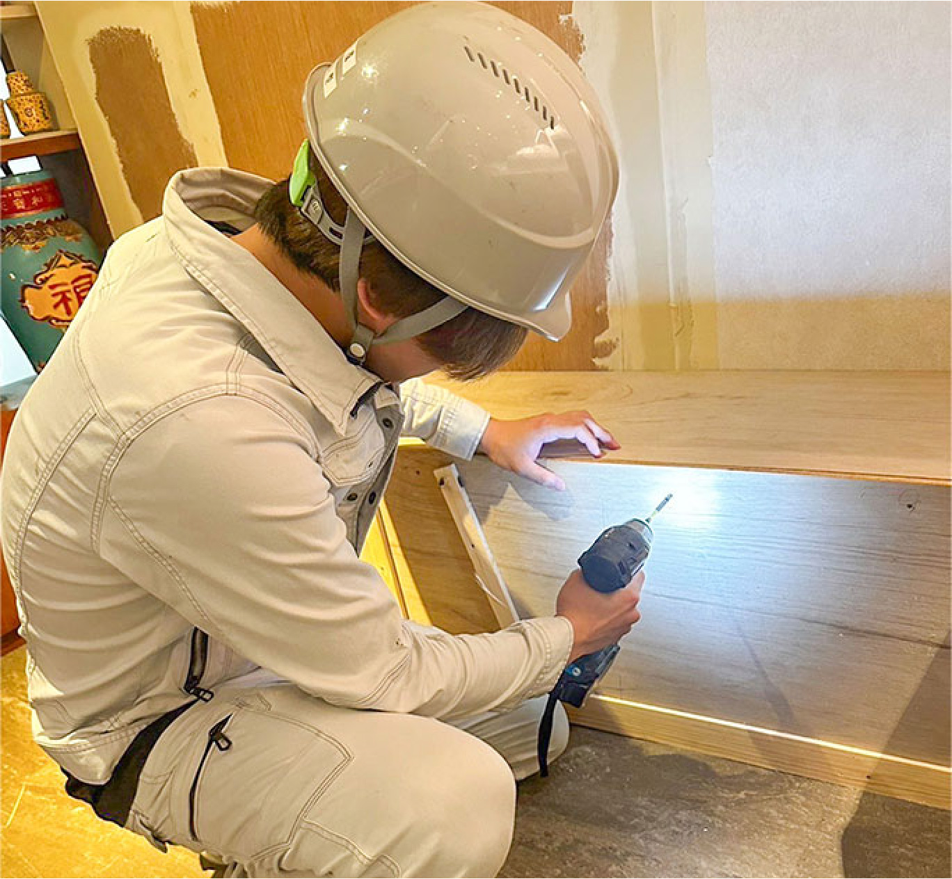 内装工事未経験スタートの方も大歓迎!入社後はまず、現場で簡単な手伝いをしながら先輩達の仕事を見せてもらいましょう。